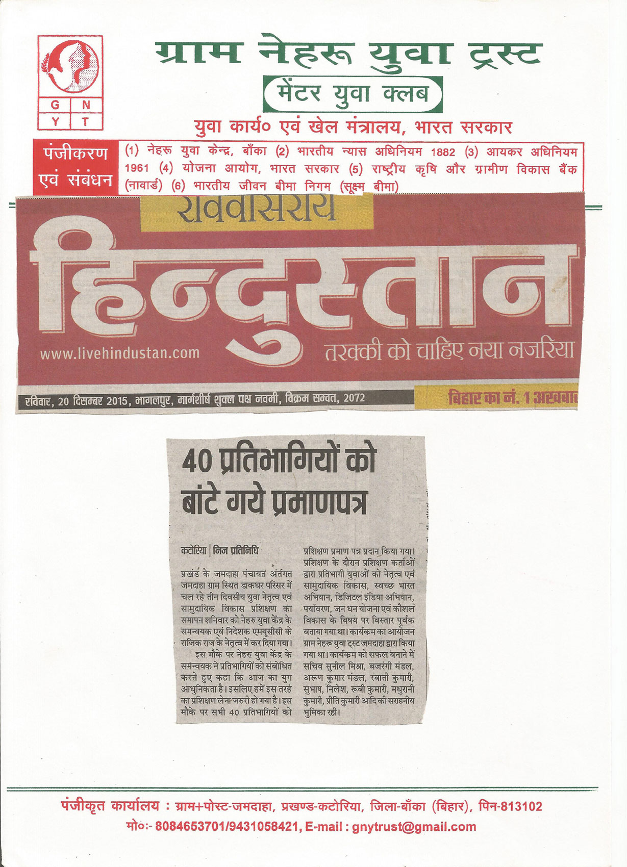 Gram Nehru Yuva Trust (Metor Youth Club), established in 1994 under the Nehru Yuva Kendra Scheme (NYKS), is a youth-led organization committed to empowering rural communities through education, skill development, and social awareness. Registered under the Indian Trust Act, 1882, GNYT operates actively in Banka (Bihar) and Deoghar (Jharkhand) with a mission to inspire youth-led development for a self-reliant and progressive society.